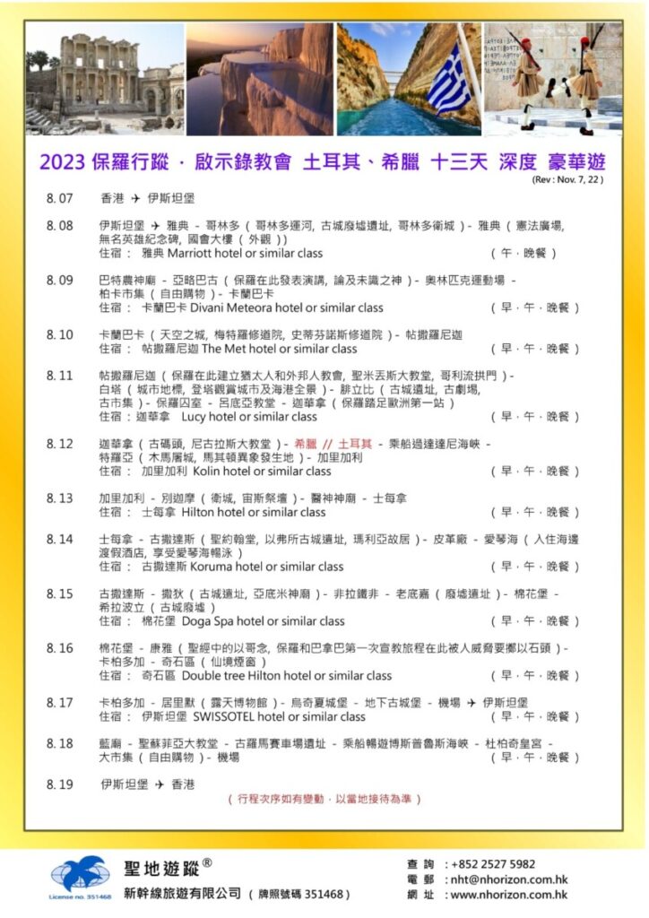 「保羅行蹤 ∙啟示錄教會 土耳其、希臘 十三天深度豪華遊」。